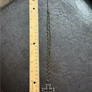 Unique Bronze Cross Pendant Necklace With Silver Crystal Accents. NWT