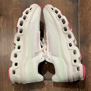 ON CLOUDMONSTER WOMEN Road Running sneakers in WHITE/LIMA No box or tag-Store Display- minimal signs of wear-from the customers or storage- please check all the pics/details and ask questions before purchasing SOLD AS! Size 7,5/38,5 women’s-true to size- Best for: road running, long runs, recovery runs, everyday running