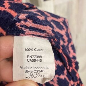 J. Crew Pink Blue V-Neckline 3/4 Sleeve Tunic Blouse Medium