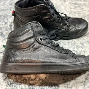 Gucci Black Guccissima Leather High Top Sneakers Size 9.5