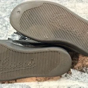 Size and serial number are not visible. You can see there is a serial number on the inside of the tongue but has been worn off. Size determined by measurements of the insole which measures 9..75 inches.
