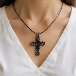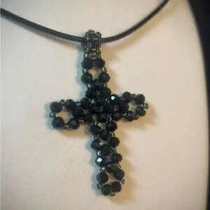 This elegant, handmade beaded cross necklace is more than just an accessory; it's a testament to your faith. Created with multifaceted black beads for a unique statement piece that is as special as your journey. The intricate and delicate design captures the essence of devotion, making it a perfect and meaningful keepsake and accessory or a heartfelt gift for a loved one. Wear your faith and devotion proudly.