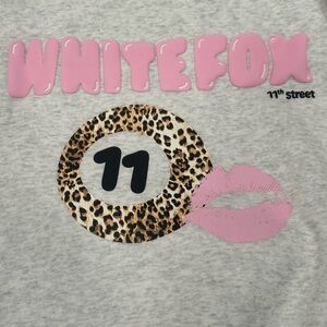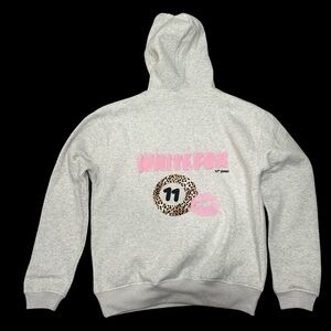 NWT White Fox Women’s Large “Leopard Splice” Gray Hoodie with Pink Logo