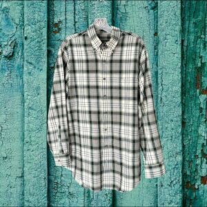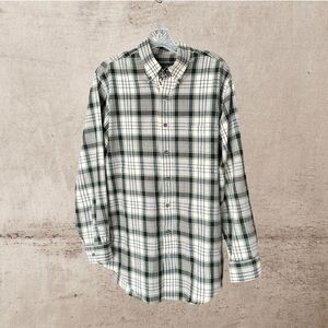 Orvis Mens Long Sleeve Button Down Shirt Cotton-Flannel Plaid Green/Cream Large