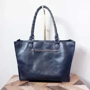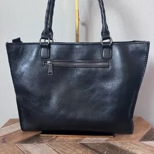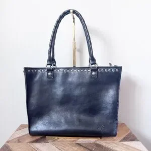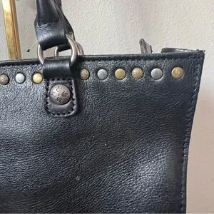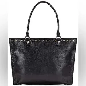 Large black leather studded tote bag in good condition. Zips across the top. Clean inside and out.