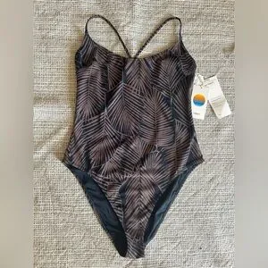 Vuori Black and Brown Leaf Print One Piece Swimsuit