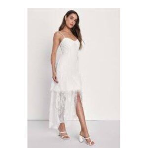 New Lulus Elaborate Love White Lace Bustier Tiered High-Low Maxi Dress P1967