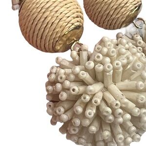 Large Cream Boho Beachy Beaded Earrings Pierced Coastal Grandma