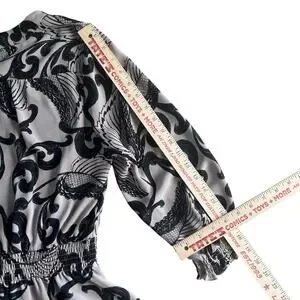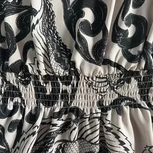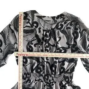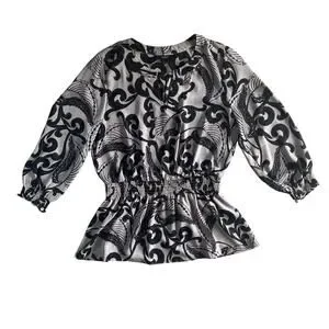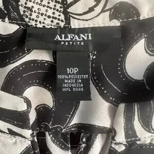 Alfani Petite Blouse 10P Black Beige Print Peplum Waist 3/4 Sleeve