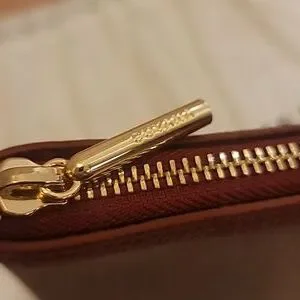 Cuyana Mini Canvas and Leather Tan and Deep Red Pouch with Gold Zipper