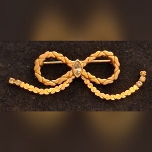 Vintage AVON Gold Bow Brooch with Rhinestones
