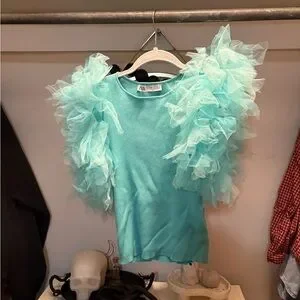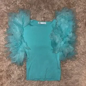 Super cute and unique organza sleeve tulle top from Zara! Only worn once, in great condition!! Women’s size S :)