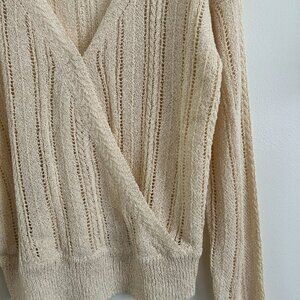 ASTR The Label Open-Knit Cream Lightweight Faux Wrap Sweater - Large
