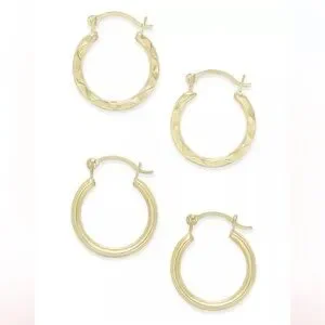 Duo Set of Small Round Hoop Earrings in 10k Gold