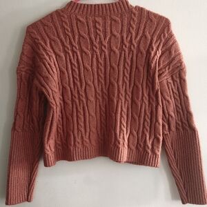 Moon & Madison XS Womens Long Sleeve Cropped Pull Over Cable Knit Orange Sweater
