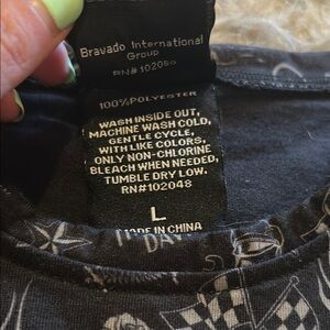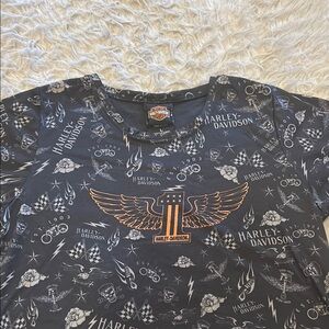 Harley Davidson orange, black and white logo polyester tshirt size large