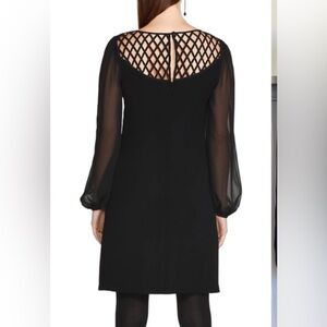 White House Black Market Black Lattice Yolk Sheer Sleeve Shift Dress Size 6