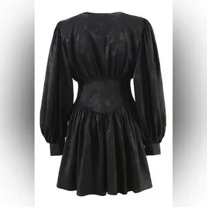 Little black dresses in flowers are simply irresistible for women. Fit and flare silhouette brings an airy-free feel to this floral jacquard little black dress. Featuring a deep V neckline with frill trim, a hidden zip closure at one side, bishop long sleeves with buttoned cuffs, a fit & flare silhouette with a corselet shaping waistband and a swingy short dress cut, this long sleeve mini dress in our boutique is perfect for making an outfit go from basic to elevated and chic. Wear it from stilettos to suede boots for an instantly vintage go-to.