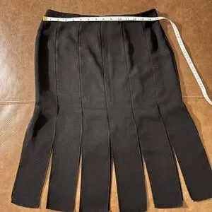Pre-loved chic black pencil fringe skirt from White House Black Market. Ideal for versatile styling.