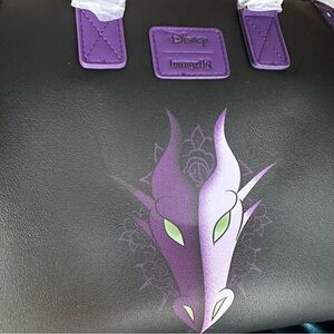 This Disney Sleeping Beauty Maleficent Satchel Bag is very stylish with purple and black complimentary colors. It is new with tags and in good condition and never been used. You will go places with this awesome bag. It shows a portrait of Maleficent with "Mistress of Evil" text on a banner on one side, and her dragon form on the other side. The side panels have an allover print of the dragon and the spinning wheel. Top carrying handles, removable, adjustable shoulder strap and interior pocket.