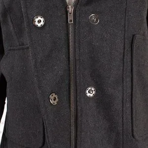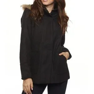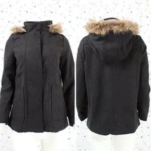 Charcoal Faux Fur Hooded Wool Blend Coat Jacket