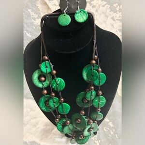 Experience the vibrant allure of summer with the Paparazzi Necklace and earrings in South Beach Green. This stunning piece is perfect for adding a pop of color to your outfit. Beautiful for Boho wedding party etc. NEW