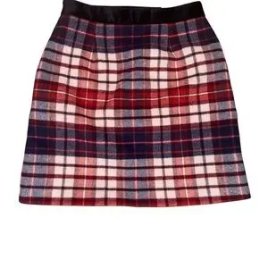 Deadstock Tommy Hilfiger Wool Skirt Plaid Red White Blue Pockets US2 UK4 Small