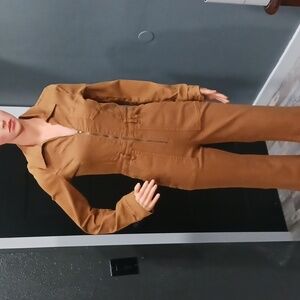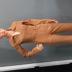 Mumu Women's Camel Long Sleeve Jumpsuit Front Zip Closure, Size Small, new with out tags