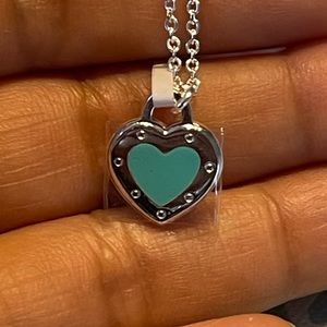 Elegant silver heart pendant necklace with a turquoise accent. Perfect for adding a touch of color to any outfit. 925