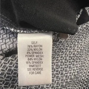 Small geometric design in black and white, sleek fit with an interior panel to smooth everything out. Excellent condition.