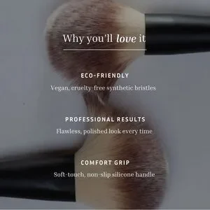 🌿Two brushes designed to meet the reality of your routine. The Bronzer Brush creates a sun-kissed glow in seconds, while the Tapered Brush delivers precision for setting, sculpting, and highlighting. Made with ultra-soft vegan bristles, a soft-touch finish, and ergonomic silicone handles for ultimate comfort and control.