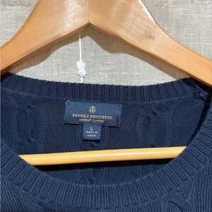 Brooks Brothers Navy Blue Cable Knit Crewneck Sweater