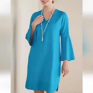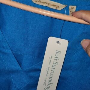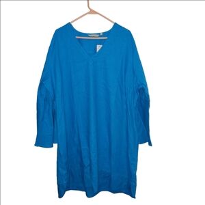Soft Surroundings NWT Soleil Linen Blend Dress Blue V-Neck Mini Dress 3X