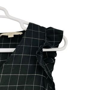 Elevate your wardrobe with this stylish and versatile Loft dress. The black and white check plaid pattern adds a classic touch, while the ruffle accents and cap sleeves give it a fun and playful feel. Perfect for both casual and business occasions, this knee-length shift dress features a V-neckline and zip closure for easy wear.