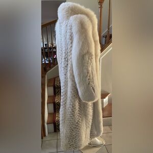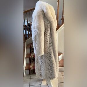 Elegant White Fox Fur Coat With Brownish Fur Markings