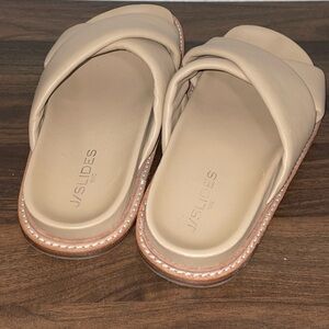J/Slides Roland Leather Sandal, Beige Size 8.5
