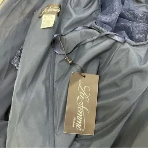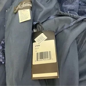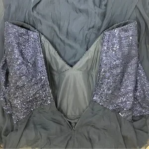 La Femme Chiffon and Sequin A Line Gown Faux Wrap 3/4 Sleeve Navy Blue Size 16
