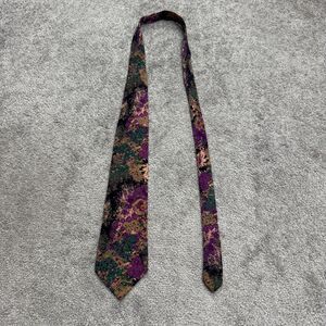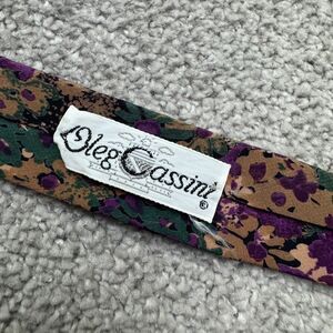 Oleg Cassini Vintage 90s Silk Necktie Mens Floral Abstract Purple Green Designer