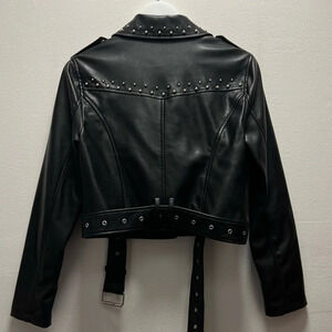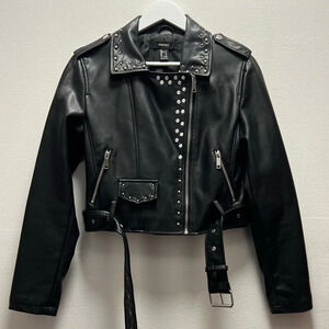 NWOT Forever 21 Black Faux Leather Moto Jacket with Silver Embellishment