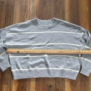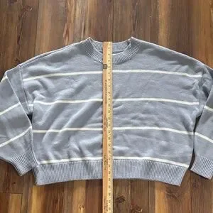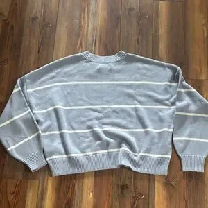 Hollister Women's Blue & Soft White Boxy Striped Crewneck Sweater XL