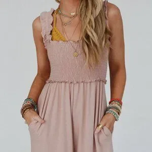 NWT THREE BIRD NEST Nothing Compares Smocked Ruffle Jumpsuit Dusty Rose Small