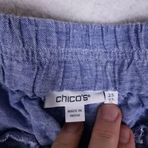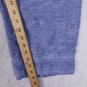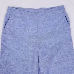 Chico's Linen Pants Blue Cropped Pull-On Size 14 Coastal Grandmother