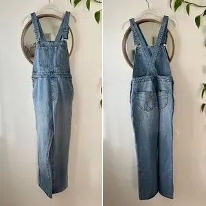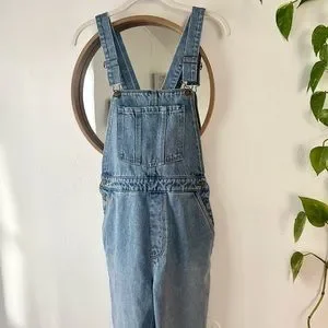 Stylish light blue denim overalls. Features classic overall design. Perfect for casual wear.
