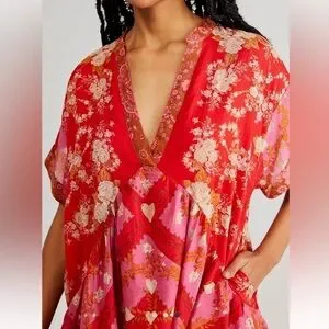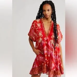 Free People Agnes Printed Mini Dress in Red/Pink