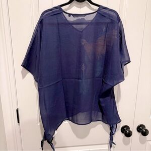 Colleen Lopez New without Tag - Navy blue blouse with vibrant parrot design. Lightweight and stylish. Sheer. Perfect for casual wear and vacation! Cute ties on the sides.