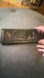 Elegant black leather clutch wallet with iconic logo detail. Two inside zipper pockets with credit card slots on one side.