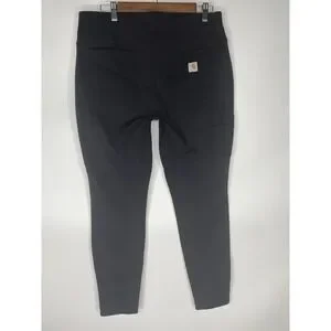The Carhartt Large 12 14 Force Fitted Utility Black Leggings Pants 102482 NO4 are versatile and stylish pants for women. Made from a durable nylon and spandex blend with a knit fabric type, these leggings offer comfort and stretch. The high-rise design and skinny leg style provide a flattering fit, perfect for casual, workwear, or travel occasions. Featuring a pull-on closure, pockets, and a solid black color, these leggings are easy to care for with machine washable instructions. The Carhartt brand ensures quality and durability, making these leggings a reliable choice for everyday wear.