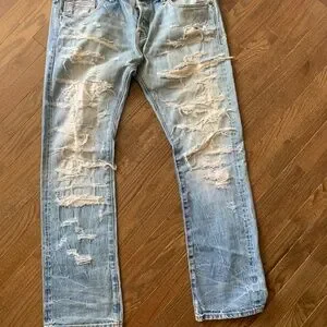 Japanese salvage denim size 36 x 34 length, used highly distressed, Rebel Straight