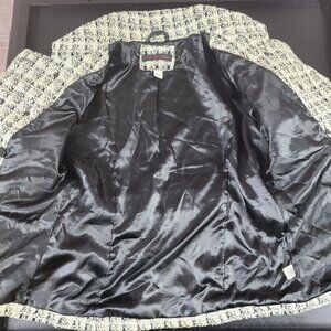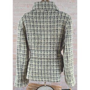 Via Spiga Wool Blend Mid Length Lined Belt Black/Cream Coat Jacket Women's Large