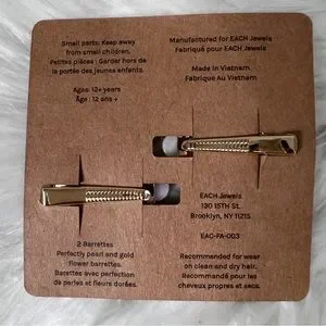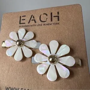 Set includes 2 Daisy Barrettes. Pearl Like Finish on Petals with Gold Tone Fasten